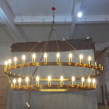 โคมไฟระย้าโลหะห้อยทรงวงแหวนเป็นโมฆะ2ชั้นโคมไฟระย้าวงล้อเกวียนสีดำห้อย